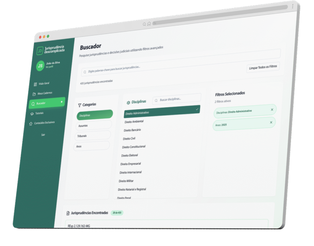 Aqui, você encontra decisões comentadas por especialistas por meio de um sistema de busca inteligente e filtros realmente funcionais.
